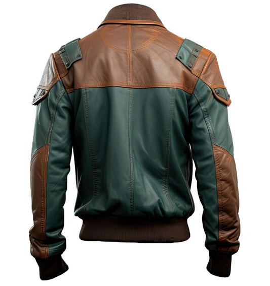 Men’s Blue White Genuine Sheepskin Leather Bomber Jacket