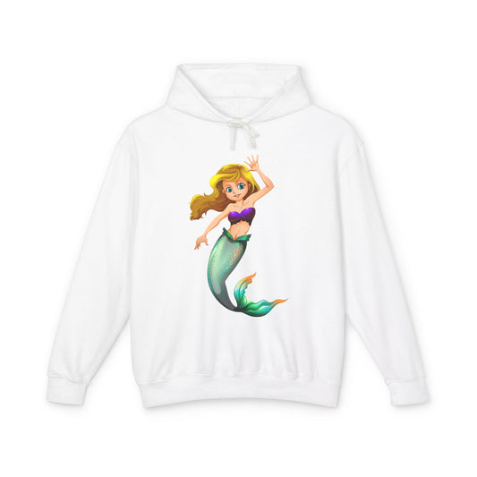 Cheerful Young Mermaid Casual Wear - Girls Lightweight Hooded Sweatshirt