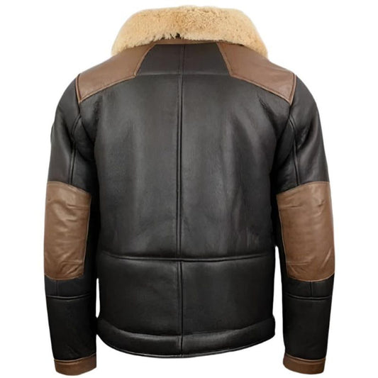 Men's Brown Faux Shearling Fur Aviator Genuine Sheepskin Leather Jacket
