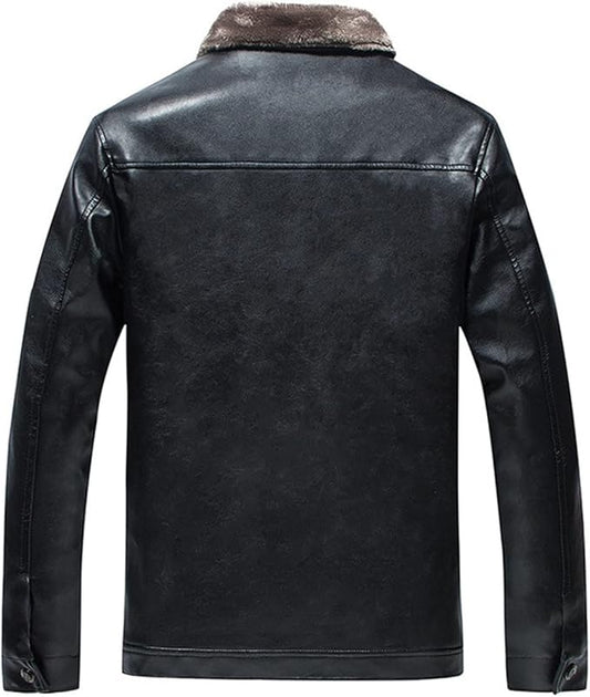 Men's Vintage Faux Fur Genuine Sheepskin Leather Jacket