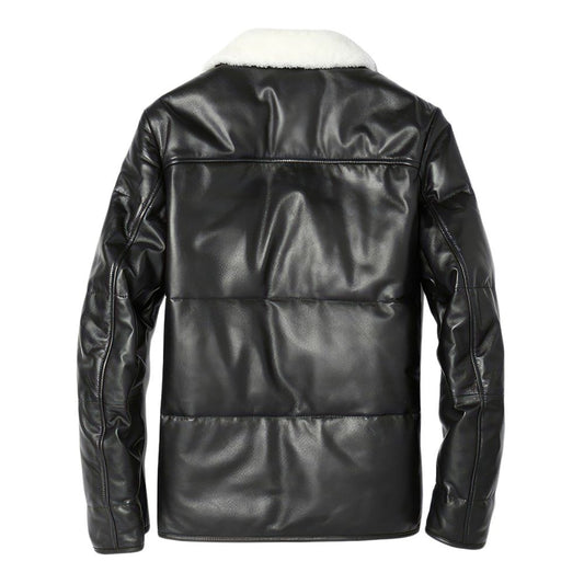 Men’s Classic Brown Faux-Shearling Genuine Sheepskin Leather Coat