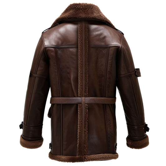 Men’s Distressed Brown Faux Shearling Fur Aviator B3 Bomber Leather Jacket