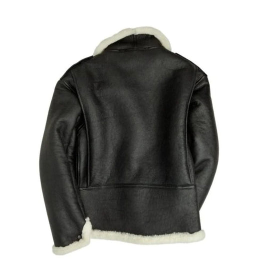 Men’s Black Aviator Black B-6 Bomber Genuine Sheepskin Leather Jacket