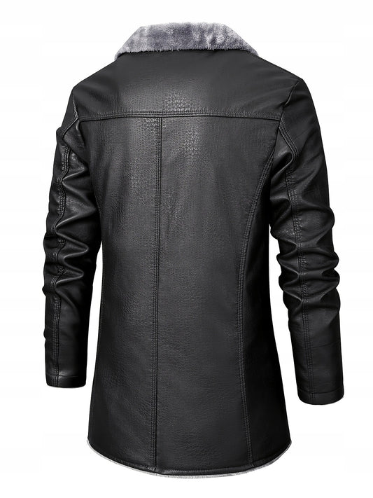 Men's Black Faux Shearling Genuine Sheepskin Trench Leather Coat