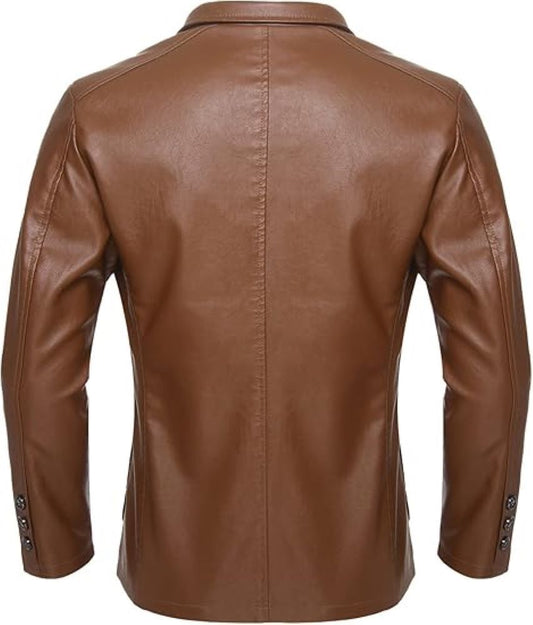Men's Classic Brown Genuine Sheepskin Leather Blazer Coat