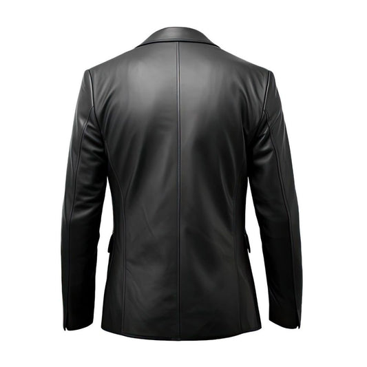 Men's Black Genuine Sheepskin Blazer Notch Lapel collar Leather Coat