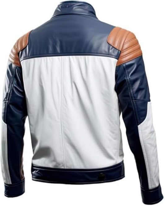 Men's White-Brown Bomber Sleek Premium Sheepskin Leather Jacket