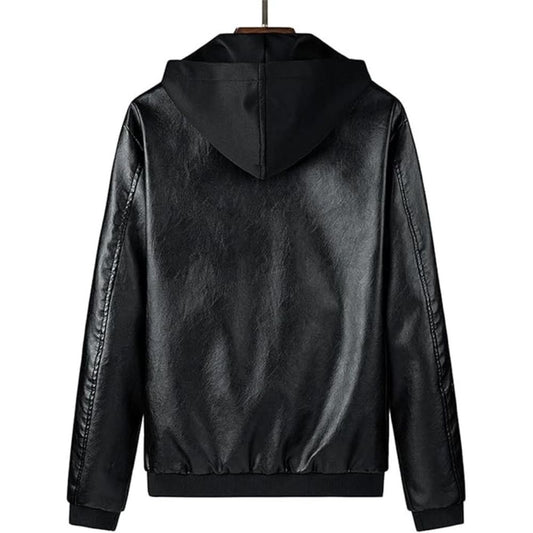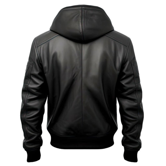 Men's Black Bomber Hooded Biker Genuine Cowhide Leather Jacket