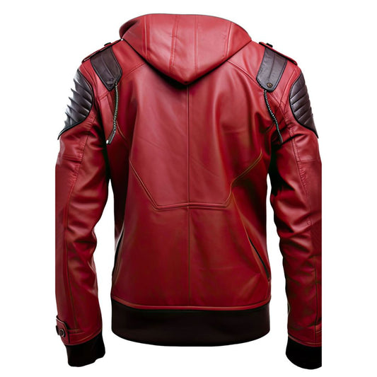 Men's Outerwear Slim-fit Biker Red Hooded Sheepskin Leather Jacket
