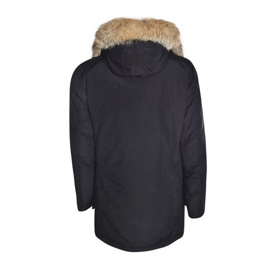 Men’s Winter Warm Black Fur Hooded Parka Streetwear Cotton Coat