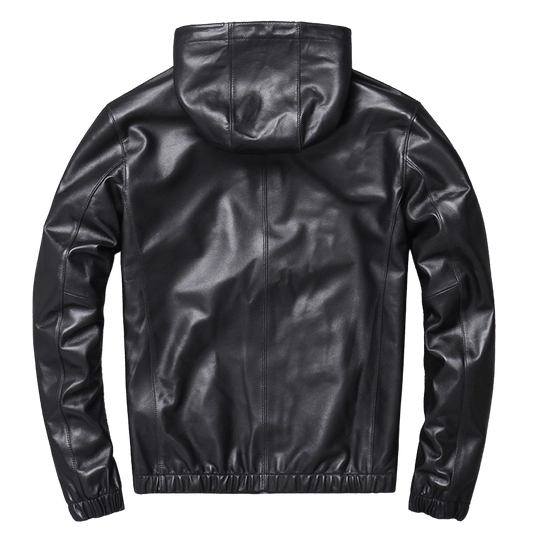 Mens Phantom Simple Genuine Lambskin Leather Hooded Bomber Jacket
