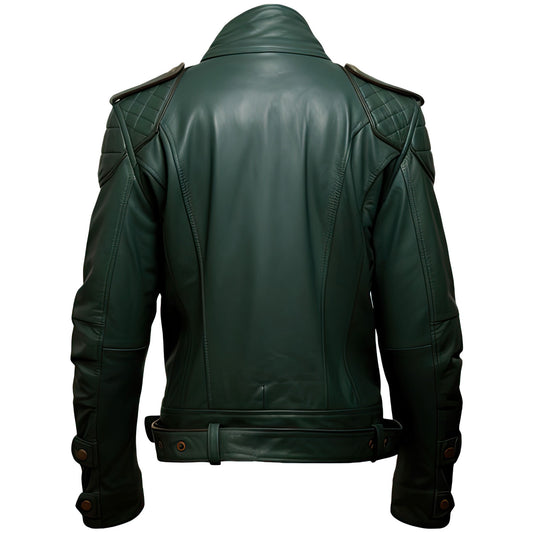 Men’s Green Genuine Sheepskin Notched Collar Rider Leather Jacket