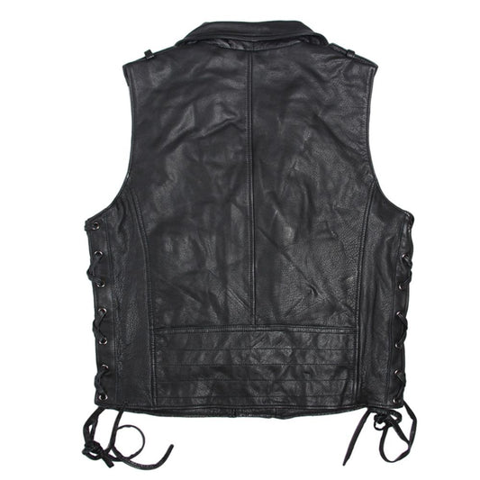 Men's Vintage Retro Black Motorcycle Genuine Cowhide Leather Vest