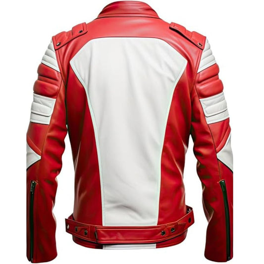 Men's Red-Black Genuine Sheepskin Quilted Motorcycle Leather Jacket
