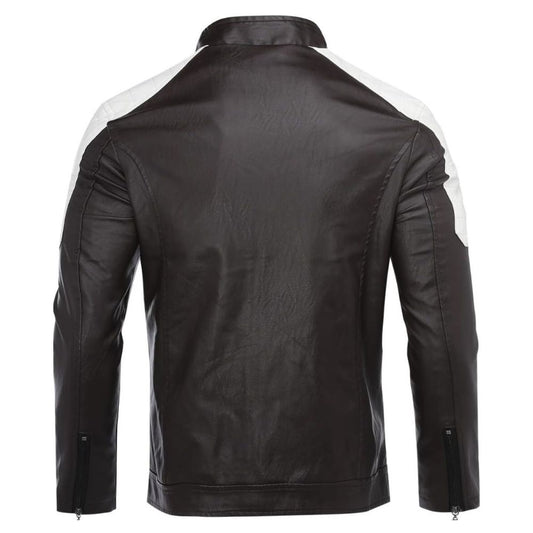 Men’s Striking Black White Genuine Sheepskin Biker Leather Jacket