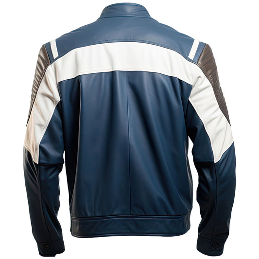 Men's Off-White Blue-Stripe Genuine Leather Motorcycle Jacket