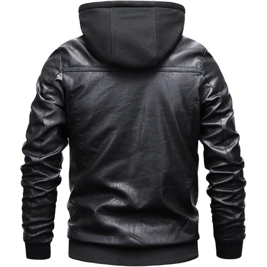 Men's Black Bomber Hooded Biker Genuine Cowhide Leather Jacket