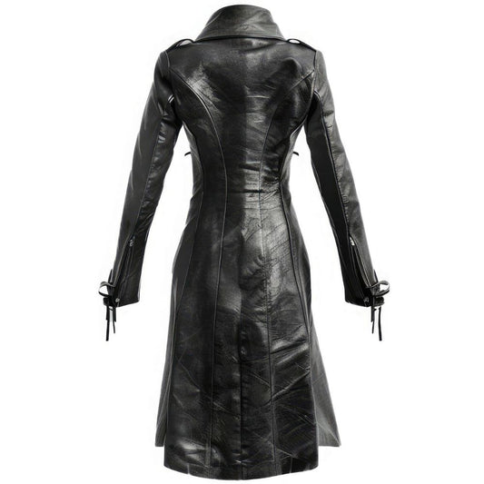 Women's Gothic Chic Black Genuine Sheepskin Long Leather Trench Coat