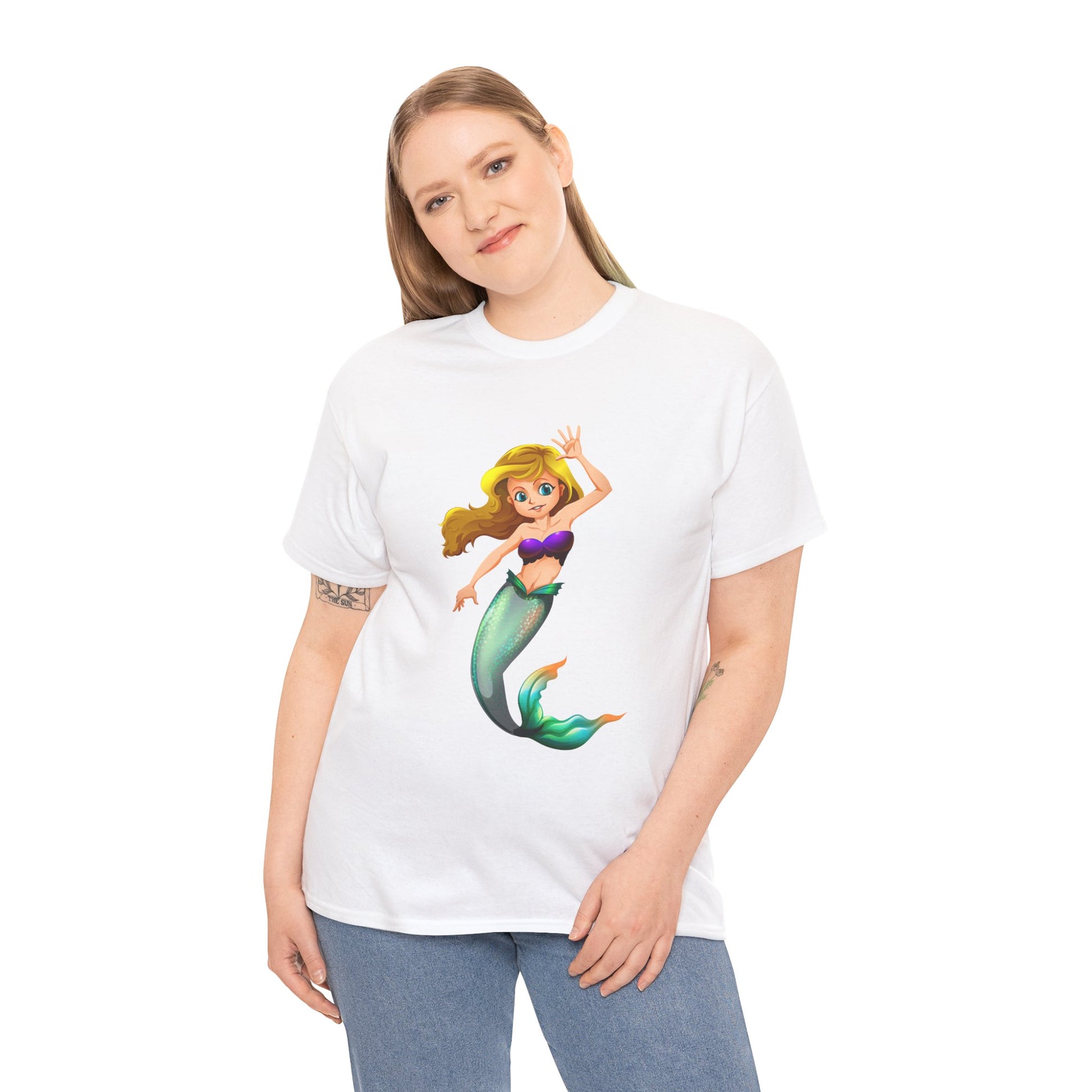 Cheerful Young Mermaid Casual Wear Girls Heavy Cotton T-Shirts