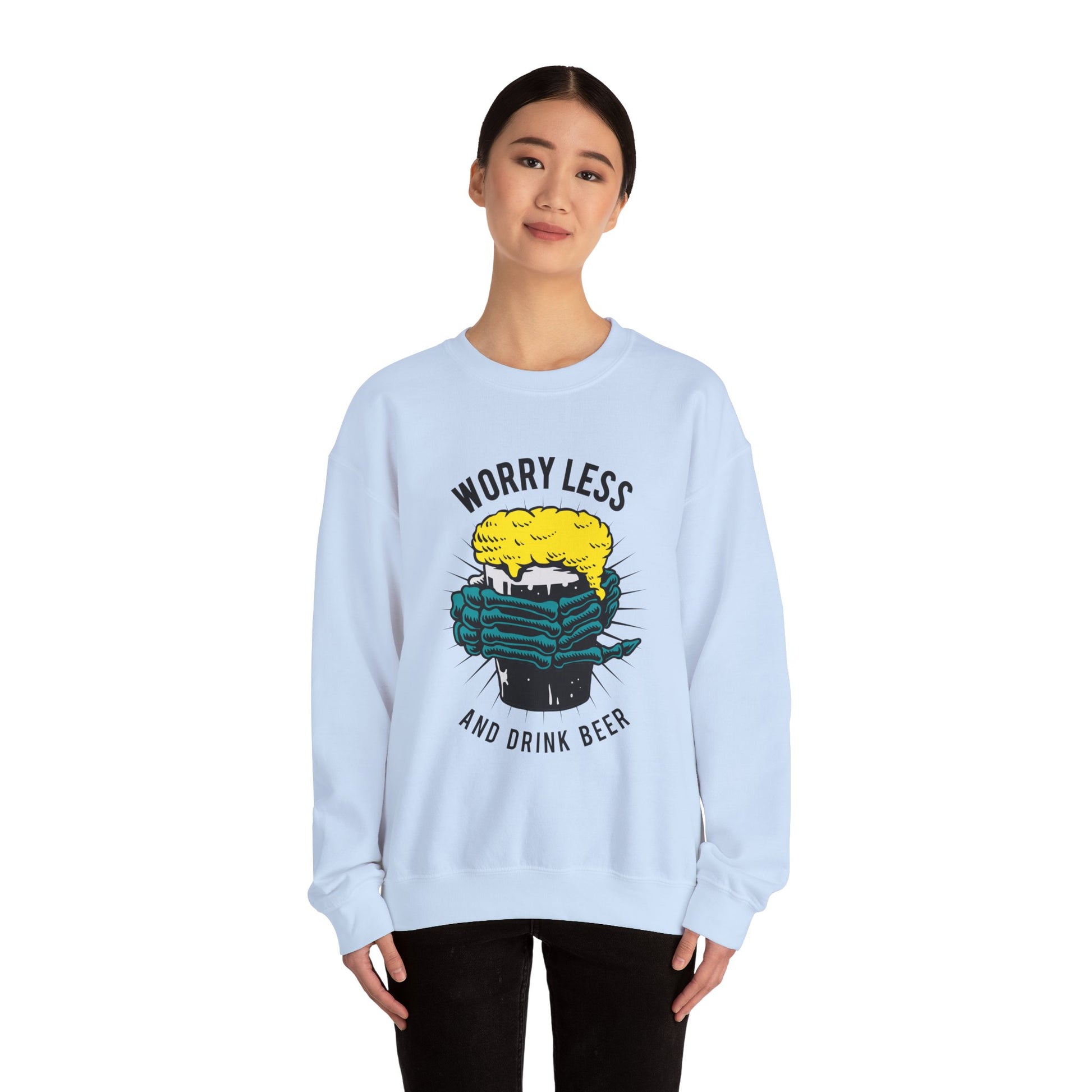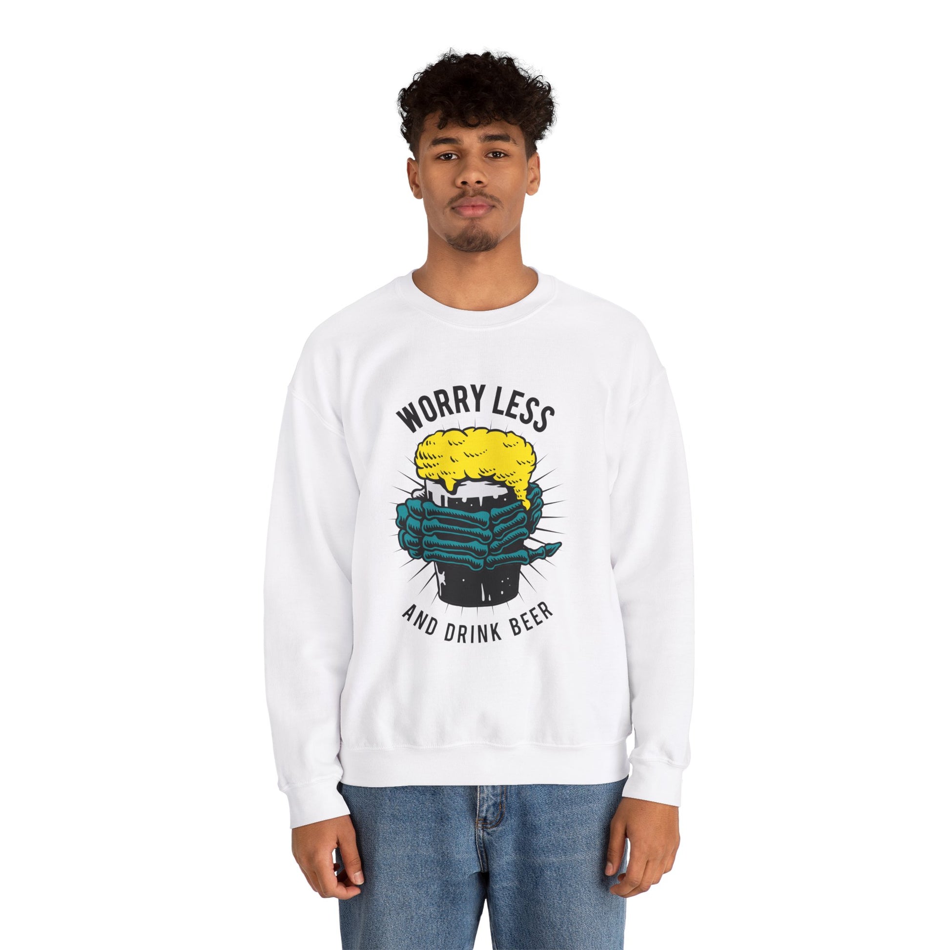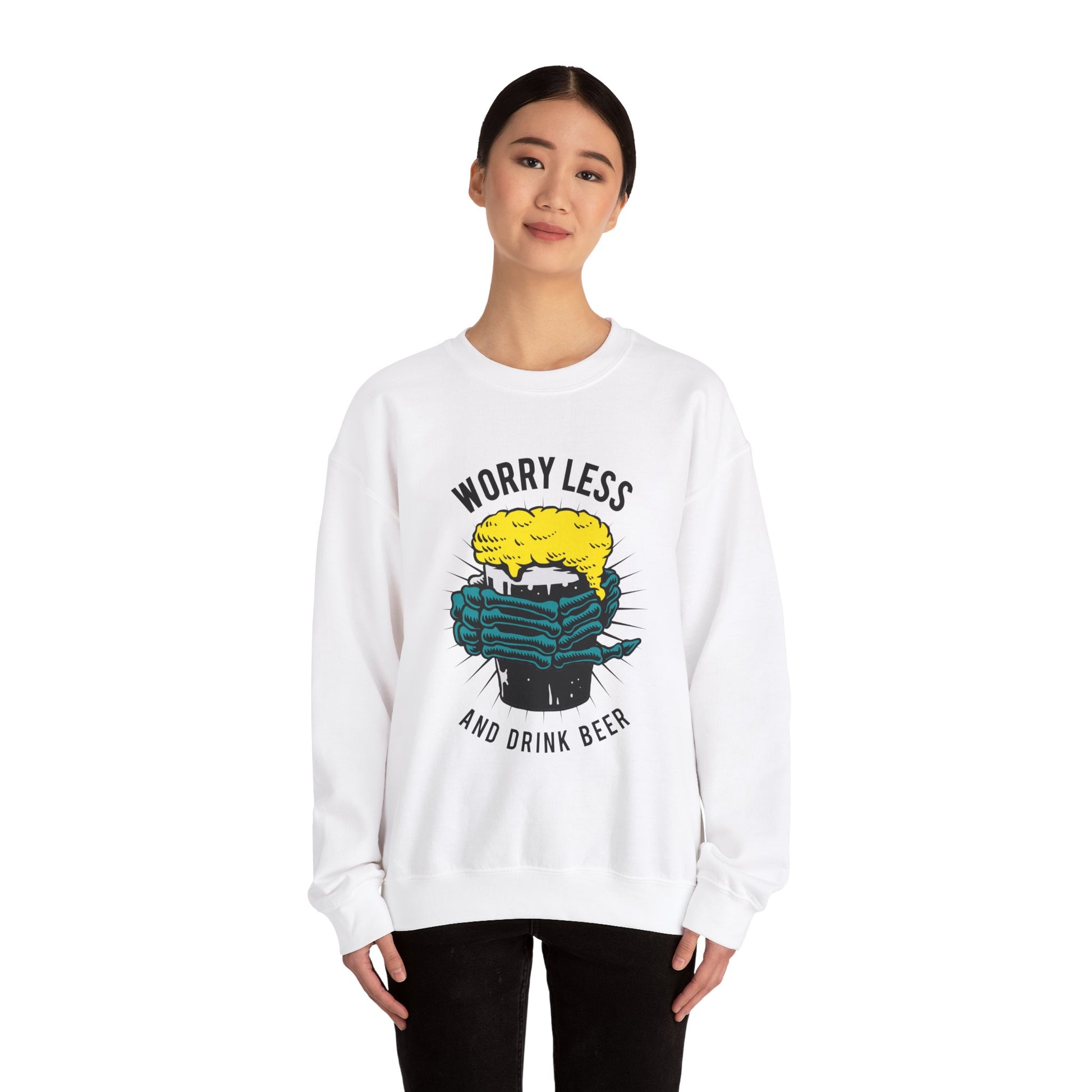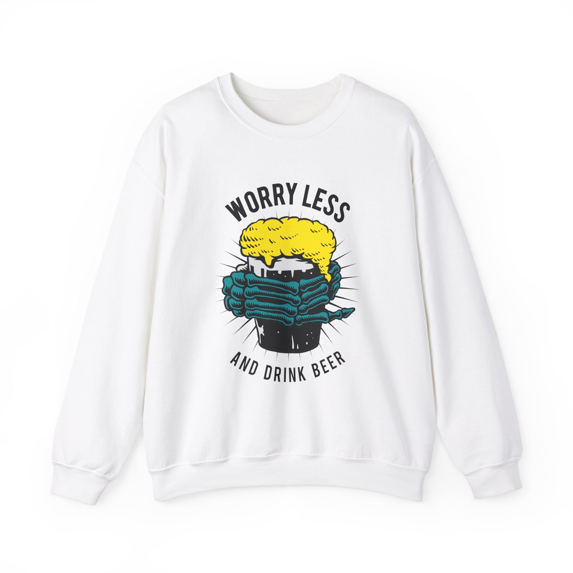 Worry Less And Drink Beer Unisex Heavy Blend™ White Sweatshirt